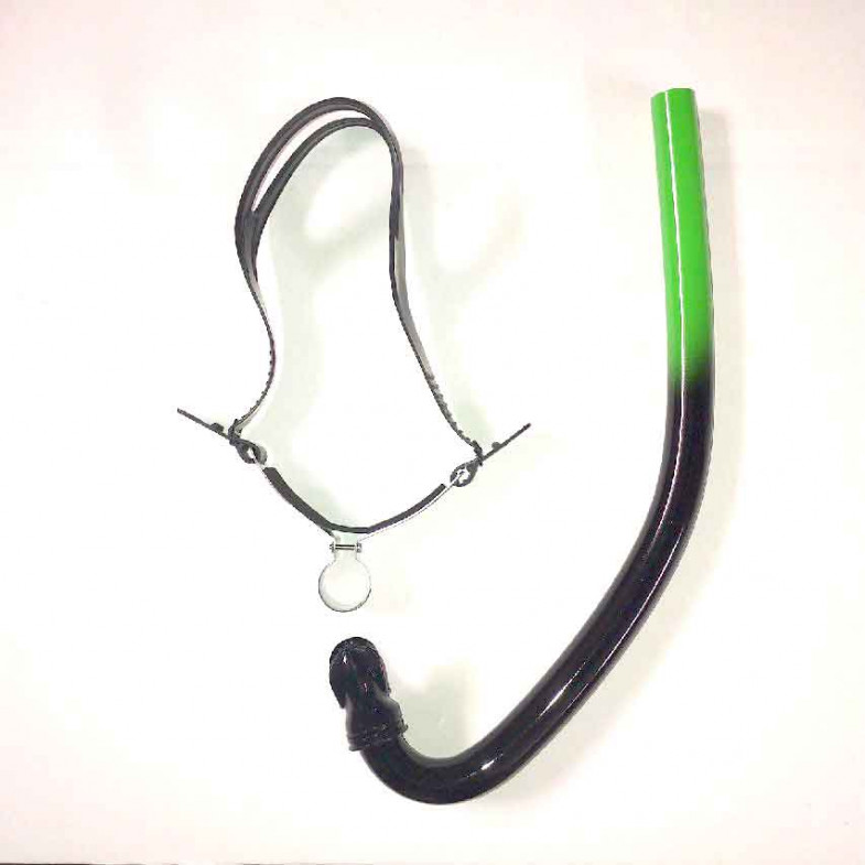 Tuba frontal adulte homologué pour la compétition. Diamètre de de 25 mm, longueur de 480 mm. Embout orthodontique en silicone noir. bandeau frontal en inox, serrage par vis sur le tube. Sangle de réglage en silicone. Chaque tuba est peint à la main et donc unique